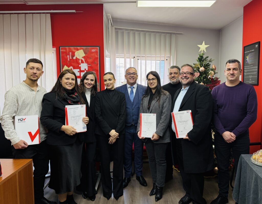 At the certification ceremony, attendees included the CEO of IDENTITEK, Senior IT Security and Standards Managers of the organization, and the General Director of TÜV AUSTRIA for Albania and Kosovo, Mr. Fatjon Sinani.